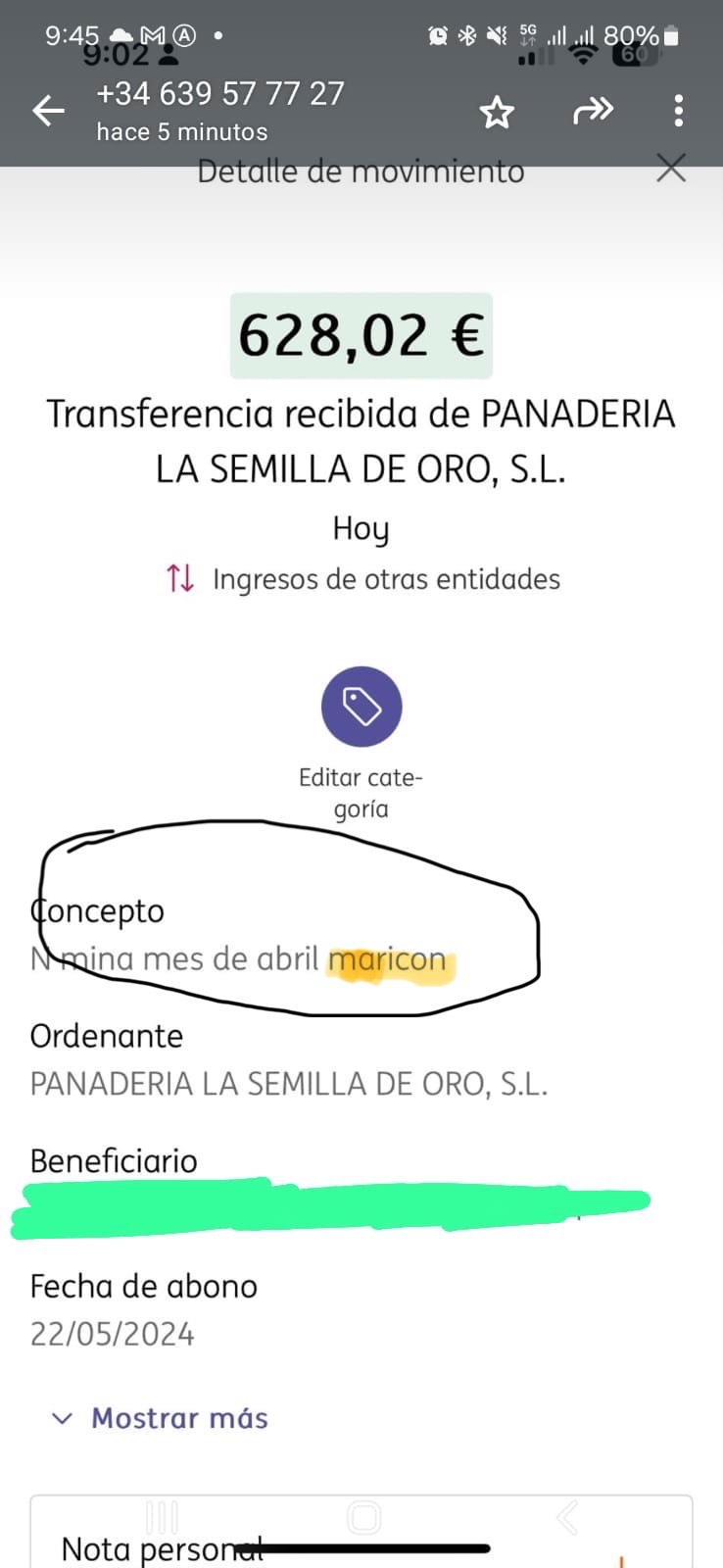 Una empresa malagueña plasmó en la identificación de la operación bancaria de ingreso de la nómina a un empleado el concepto “nómina abril maricón”. Esto sucedió el día de ayer, denostando al compañero con esa alusión homófoba e ilegal. Además, se evidencia el abono tardío e igualmente ilícito de unas retribuciones que debieran haber sido percibidas, como muy tarde, en los cinco primeros días de mayo.