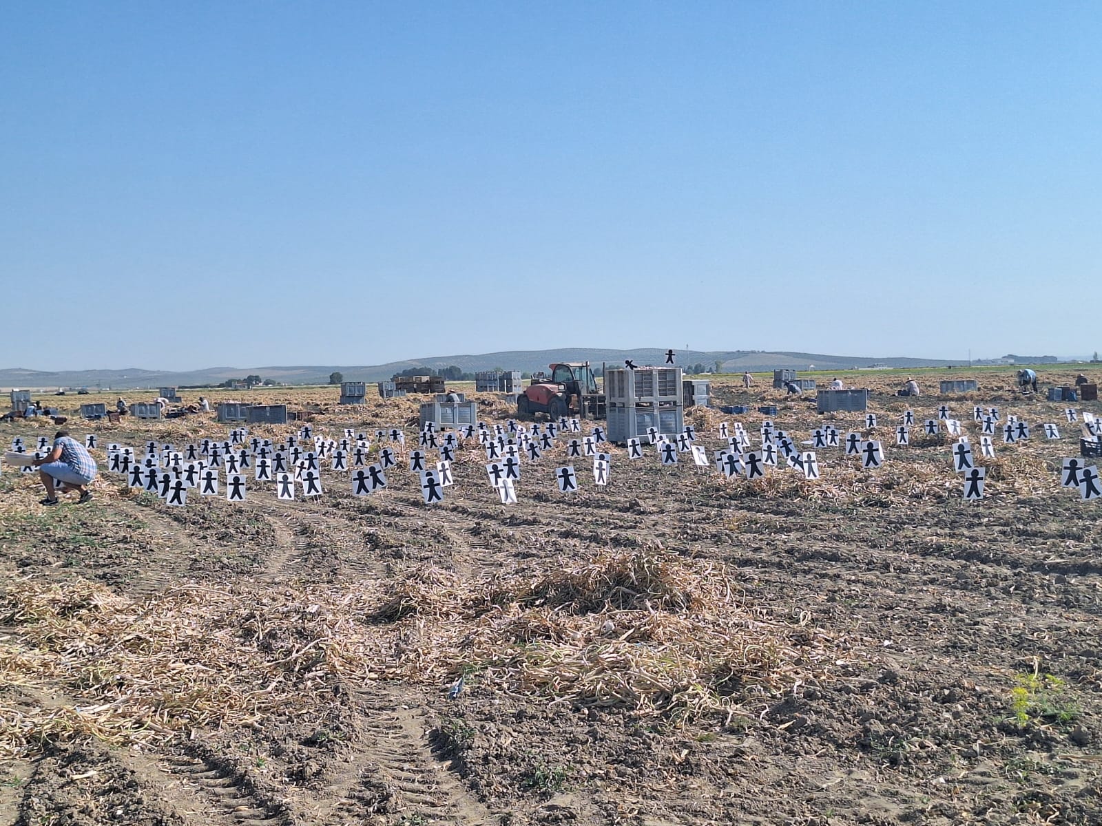 El primer acto se llevó a cabo a las 10:30h en plena vega de Antequera, en un terreno donde se está llevando a cabo la recolección de la cosecha de ajos. En este contexto, CGT denunció las condiciones extremas en las que trabajan los jornaleros, expuestos a golpes de calor debido a las altas temperaturas derivadas del cambio climático. Este sector es uno de los más afectados por la siniestralidad laboral, y el sindicato quiso visibilizar la falta de medidas preventivas que ponen en riesgo extremo a los trabajadores del campo.