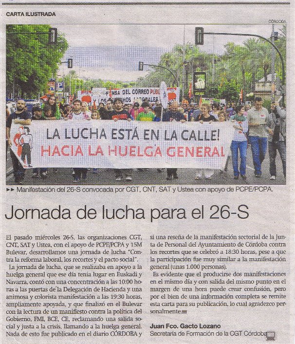 Carta al director en el diario Córdoba sobre la manifestación del 26-S