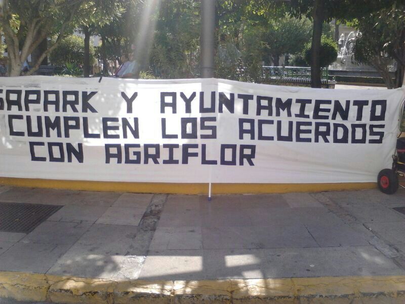 Los trabajadores de la cooperativa agraria Agriflor se concentran a las puertas del Ayuntamiento de Dos Hermanas Tres
