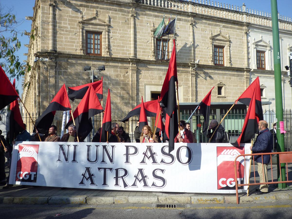 El 25 de enero, CGT se concentro a las puertas del Parlamento andaluz para denunciar los constantes despidos y múltiples