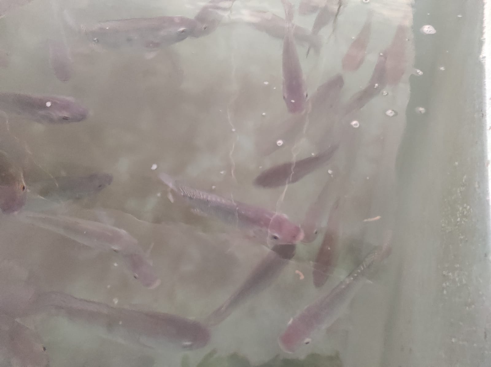 10:30 h. Visitamos proyectos donde las mujeres son protagonistas en los procesos técnicos. Nos dirigimos a la Granja de Peces (Enjaila). Quince personas saharauis gestionan la piscifactoría, enfocándose en la cría de la Tilapia del Nilo, tanto roja como morada. La falta de financiación amenaza la continuidad del proyecto, a pesar de que está destinado a cubrir necesidades básicas.