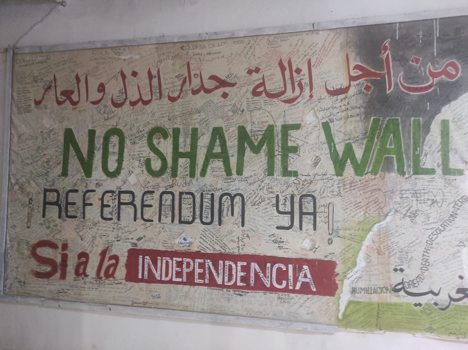 11:30 h. Llegamos a SMACO (Oficina Saharaui de Acción contra las Minas). Aquí, las mujeres abogan por la desminado y ofrecen apoyo a las víctimas de las minas. Aportan una perspectiva crucial sobre la presencia continua de minas antipersonas alrededor del Muro de la Vergüenza y la responsabilidad política de España en este contexto.
