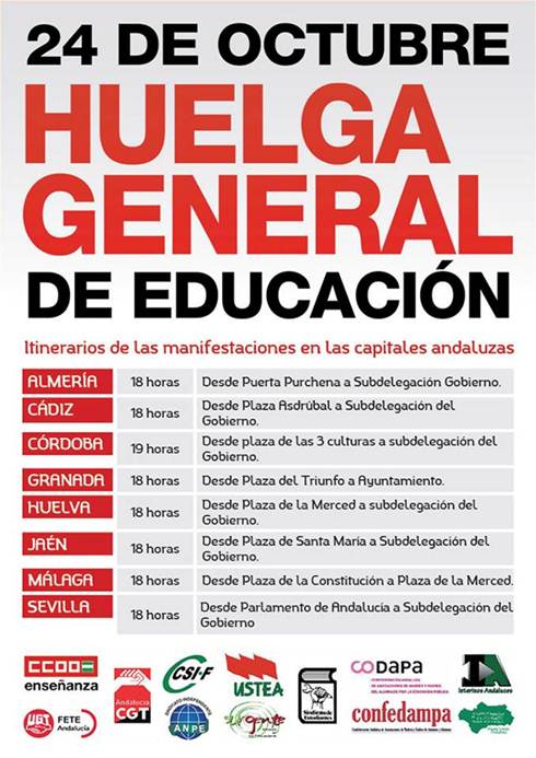 Listado de manifestaciones convocadas el 24 de octubre en las ocho capitales andaluzas (más Ceuta y Melilla) con motivo