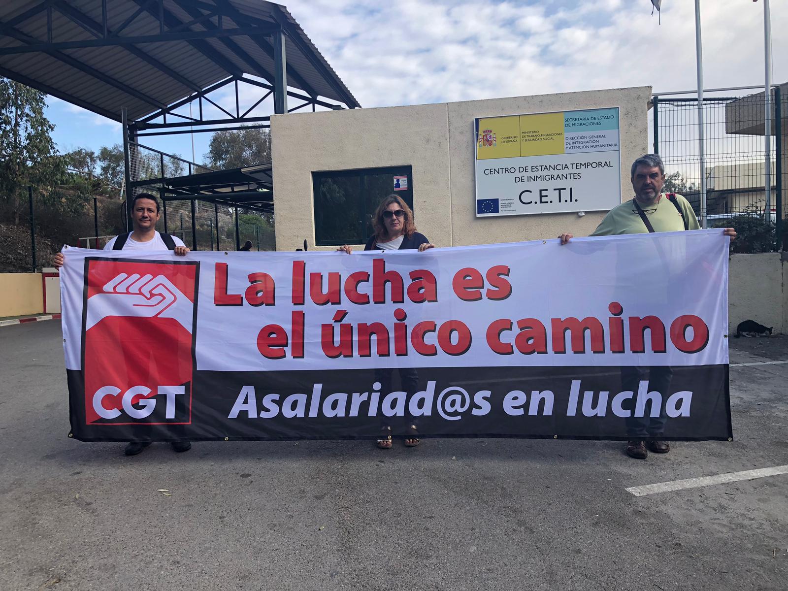 El SP de CGT Andalucía en el CETI de CEUTA apoyando a la plantilla de la empresa Dulcinea, concesionaria del servicio de catering, que no abona los salarios a su plantilla