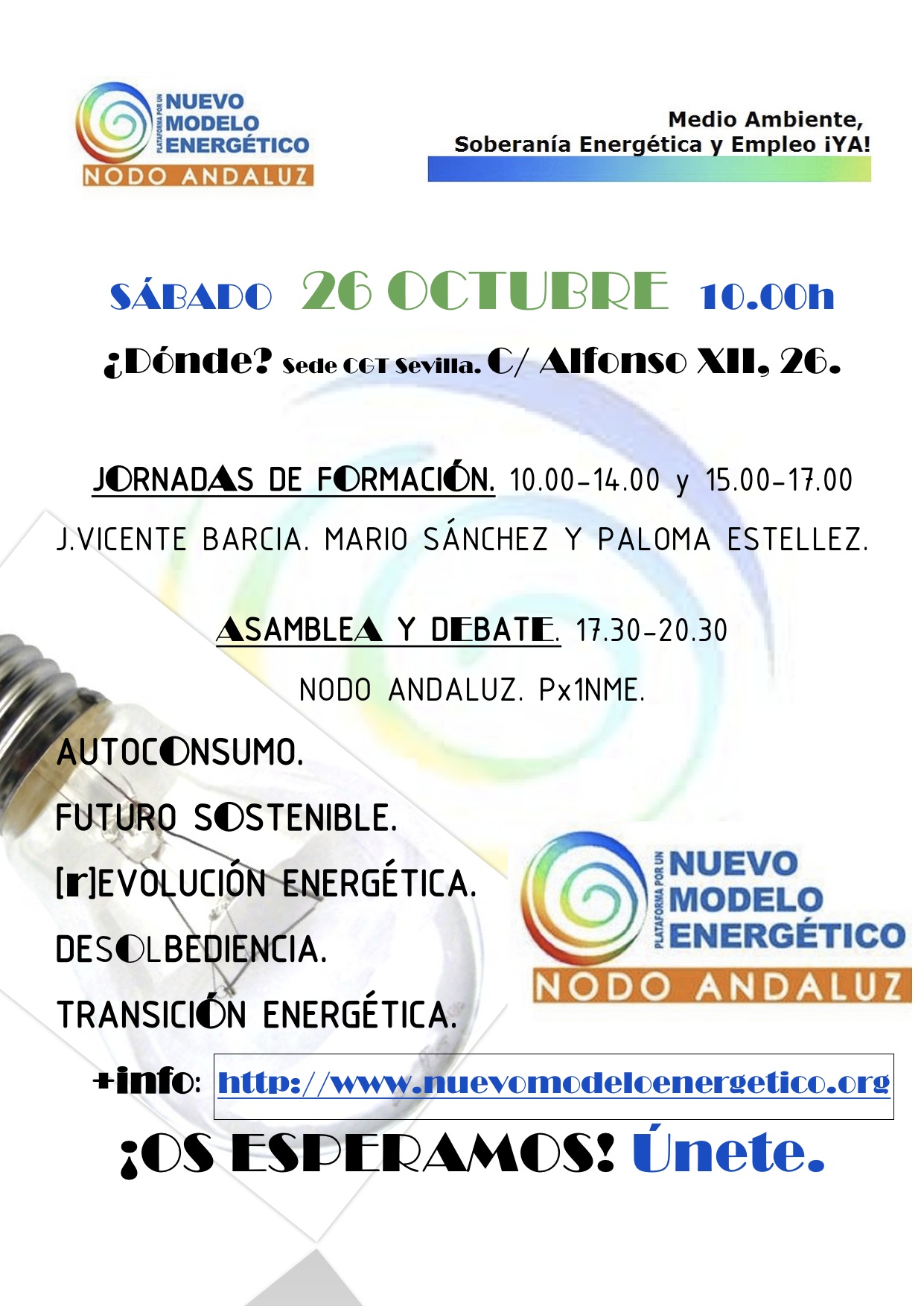 El próximo sábado, 26 de octubre, a partir de las 10:00h, se celebra en la sede de CGT Sevilla, Alfonso XII, 26. Se adju