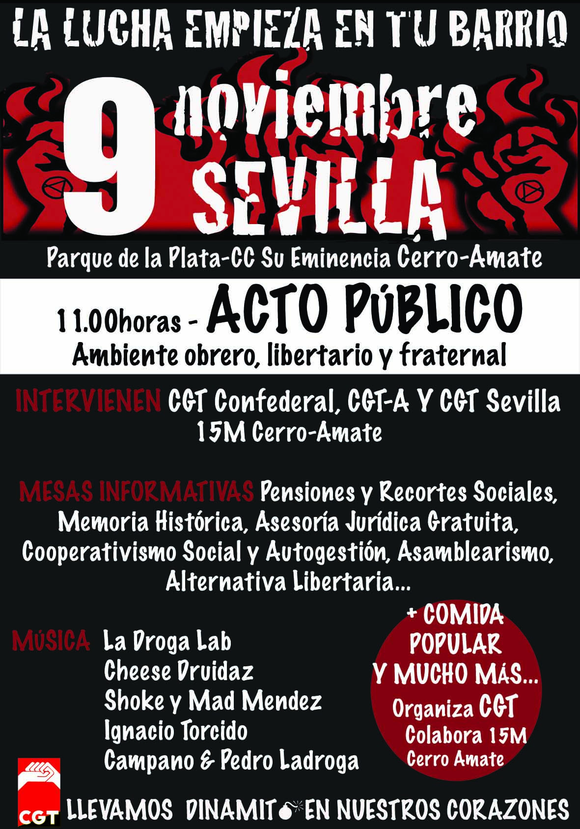 Acto Público organizado por la CGT Sevilla, en colaboración con el 15M Cerro-Amate, para este sábado 9 de noviembre a pa