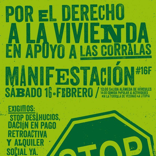 {El sábado 16 de febrero, a las 12:00horas en la Alameda de Hércules } La convoca la Intercomisión Vivienda 15M de