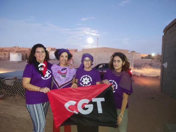 Tras un día largo de viaje que comenzó en cada uno de nuestros puntos de partida, de donde salíamos esta delegación de CGT Andalucía, Ceuta y Melilla, llegamos a reunirnos con el resto de compañeras que integramos la II Caravana de Mujeres al Sahara en el aeropuerto de Málaga, hemos llegado a nuestro destino en Bujador, uno de los asentamientos del pueblo saharaui en Argel.