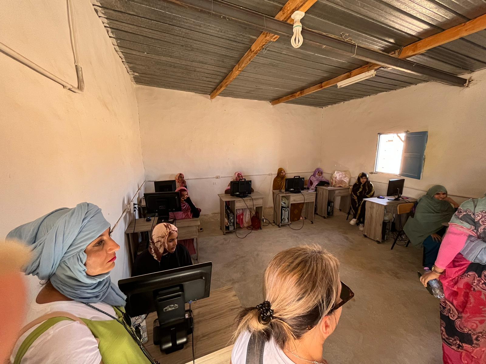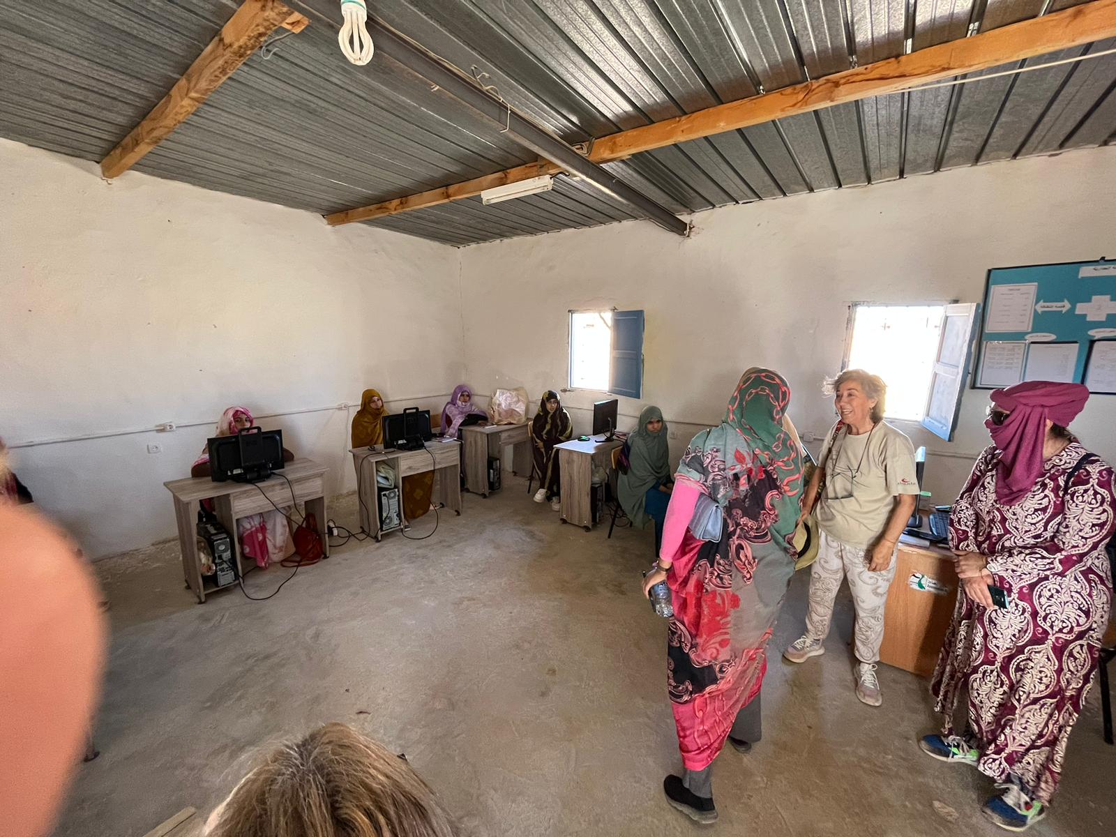 La jornada de la mañana ha finalizado con la visita al centro de Formación ocupacional de Smara, donde se imparten talleres de costura, informática, y donde también está la sede del Observatorio de la Mujer que se encarga de ayudar a las mujeres y acompañarlas en el proceso necesario para la búsqueda de empleo o para convertirse en emprendedoras.